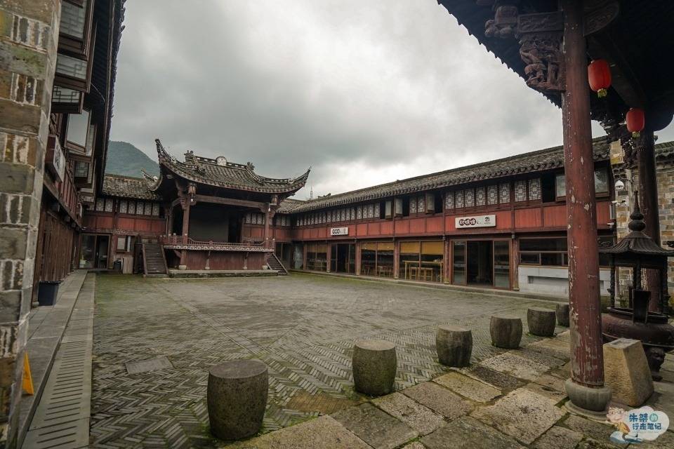 其中最具代表性的便是那风貌独特的三十六幢民居,以及孔庙、文昌阁、老衙门、新兴社等十一幢公共建筑。这些建筑依古道而建,沿枫溪铺展,色调恢雅古朴,布局独特巧妙,工艺精湛绝伦,尤其像雕刻、彩绘等细节,虽然经历了数百个春秋,依旧精美雅致、别具一格,让人惊叹工匠们巧夺天工的同时,也依稀可见昔日的繁荣景象。每逢晨起黄昏,古镇便被青霭烟岚、鸟语花香所萦绕,给人一种幽静淡雅、清空闲远的静美。