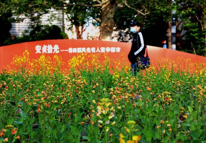 近日,在繁华的京城北三环,安贞拾光主题广场的1500平方米五彩油菜花陆续绽放,为都市增添田园风光。