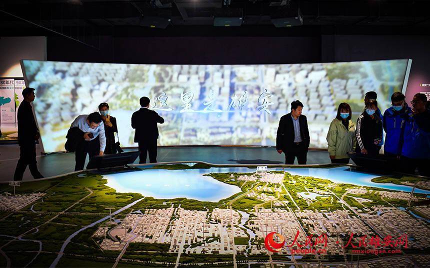 观众在“雄安印象”城市厅进行参观。人民网 宋烨文摄