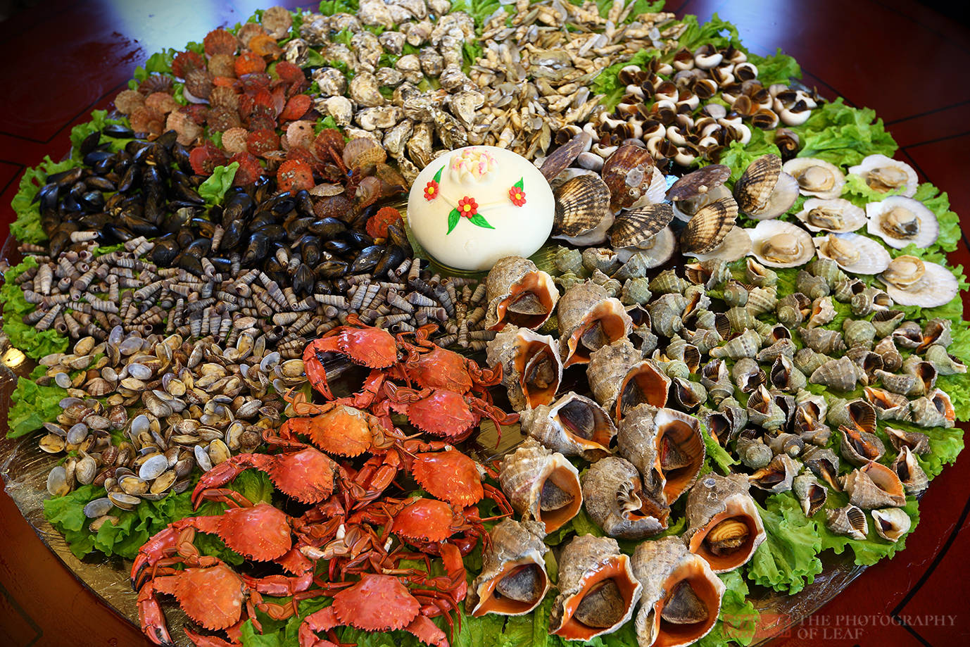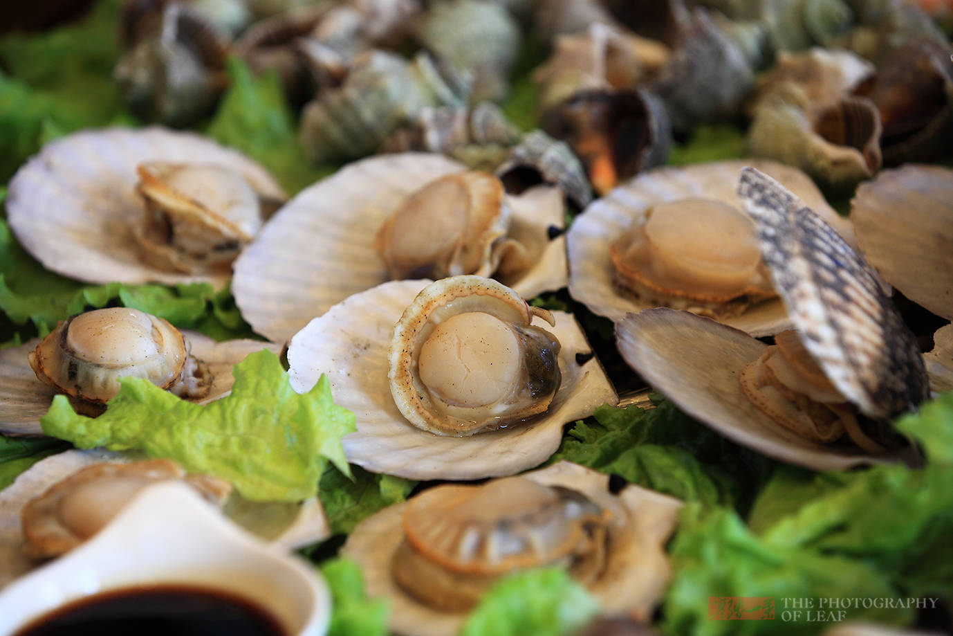 整桌海鲜贝壳类比较多。夏威夷贝,是扇贝中个头最大的,平时吃的大都为冰冻,在威海终于吃到新鲜的了。味道的确要好很多,肥厚饱满的贝肉,肥嫩鲜,还带着一丝甜味。
