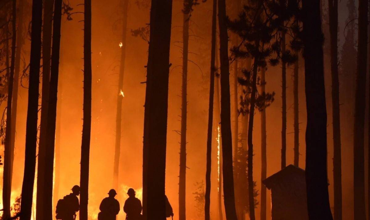 火山口湖国家公园的火焰和消防员