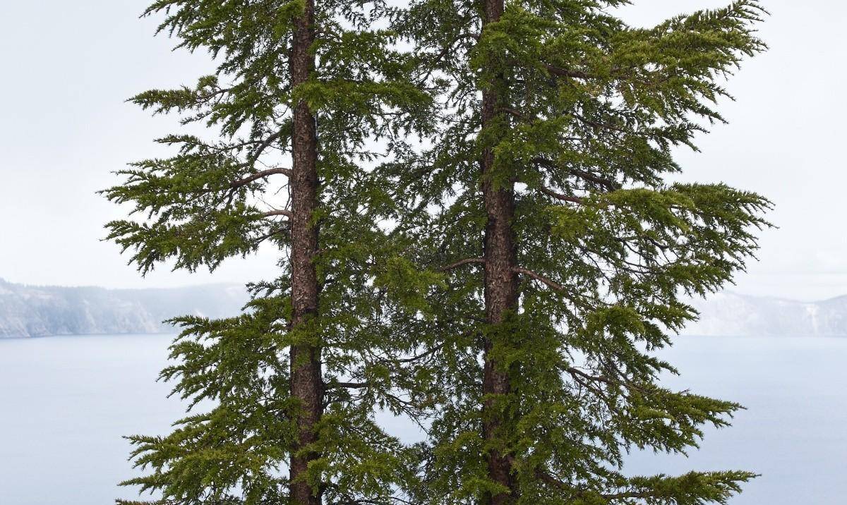 火山口湖附近生长的树木