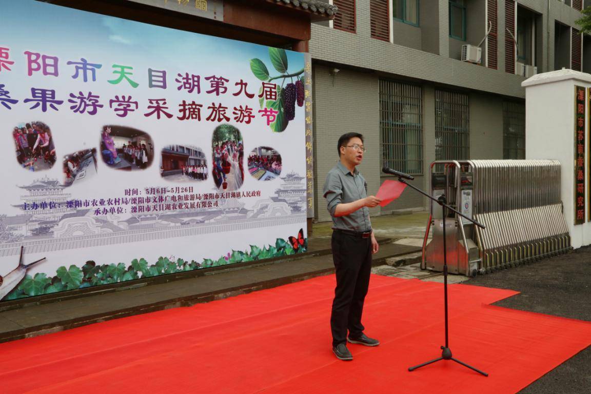 江苏溧阳讯(记者杨超 编辑:韩同瑞)5月6日,江南的天目湖畔气候宜人,江苏溧阳市第九届天目湖桑果游学采摘旅游节在溧阳市江南丝府民宿开幕,此次活动以“天目湖采摘桑果乐”为主题,让大家更好地了解溧阳的蚕桑历史文化,感受采摘桑果的收获和乐趣。此次活动由溧阳市农业农村局、溧阳市文体广电和旅游局、溧阳市天目湖镇政府主办,溧阳市天目湖农业发展有限公司承办。