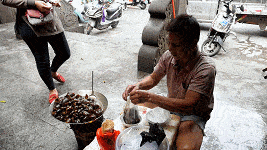 这里是海口各路吃货的集结地,中午一过,小吃摊便支了起来。