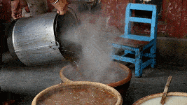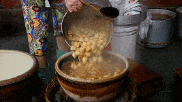 但要说西天庙最受欢迎的,还要数这家用陶盆装糖水的小摊。