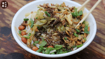 这种吃法,外地人乍一听有些黑暗料理,但甜中带辣,非常爽口,吃一口就欲罢不能。