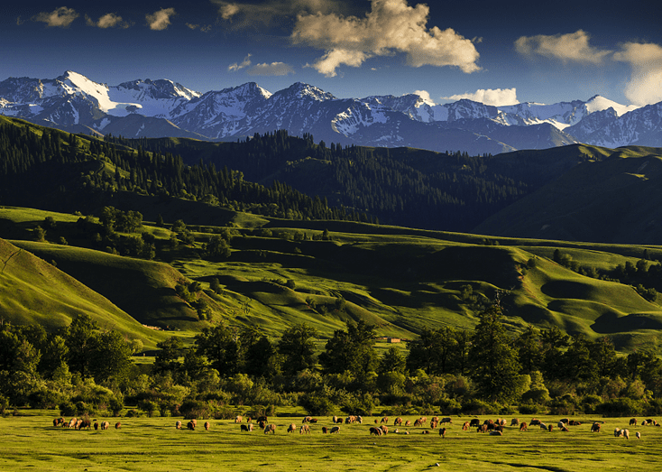 白雪皑皑的山峰、茂密的森林、连绵起伏的草原,还有游牧民族文化,宛如世外桃源。因自然生态景观和人文景观独具特色,这里被誉为“天山绿岛”“绿色家园”“五彩草原”。