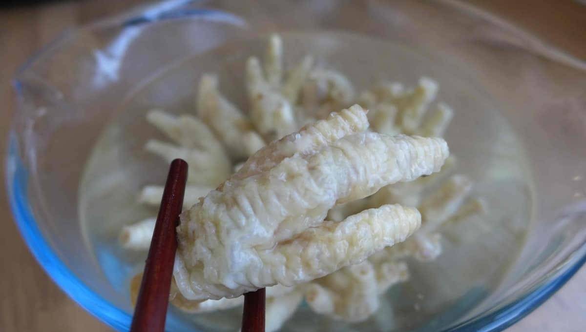 空气炸和浸泡过程是传统油炸和浸泡方法的替代方法。这个过程可以软化鸡爪的皮肤,让它们看起来有皱纹。