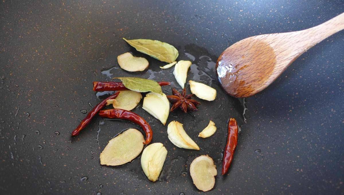 香料。大蒜和生姜会给炖煮的汤增加香味。八角茴香、月桂叶和干辣椒混合在一起,完美地融合了温暖、泥土和火辣辣的味道。辣椒是可选的,但强烈推荐,因为它们的微辣真的能提升整体的味道。
