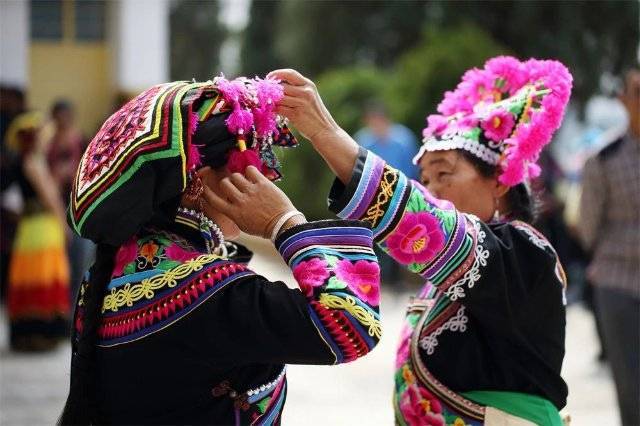 而楚雄山脉纵横,坝子相隔的地理环境造就了无数个独立的小区域,更是让彝绣图案于统一中富于变化。彝族人每年都会举办隆重的赛装节,得以展示彝族服饰的多样性。