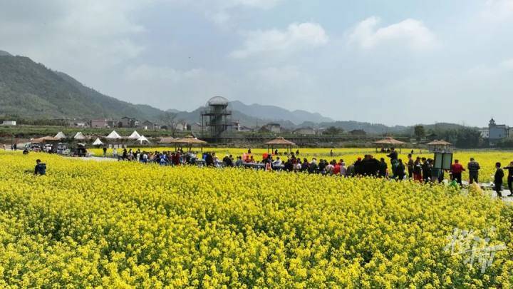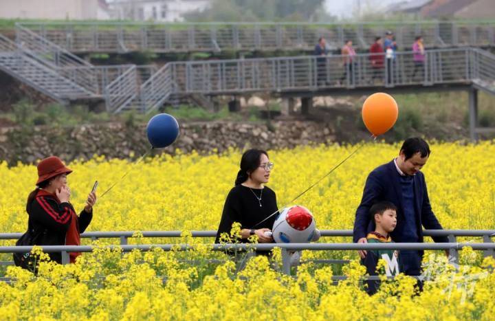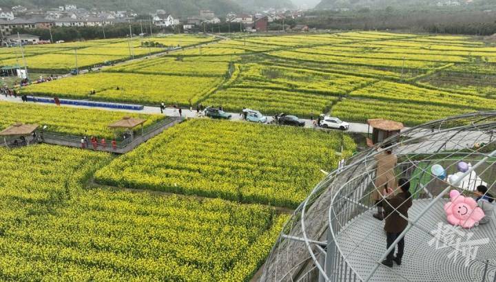 “‘稻田认领’是我们郎家村农旅一大特色,以3800元的价格认领一亩稻田,由村里帮助打理,到收成时便可领取500斤大米,并且还能免费参与春耕、摸鱼、钓虾、收割水稻等活动。目前已经有60多亩土地被认领。”郦桂忠说,眼前的这片240亩油菜花稻田打造的农文旅基地,也是村里首个试点项目的亮相。