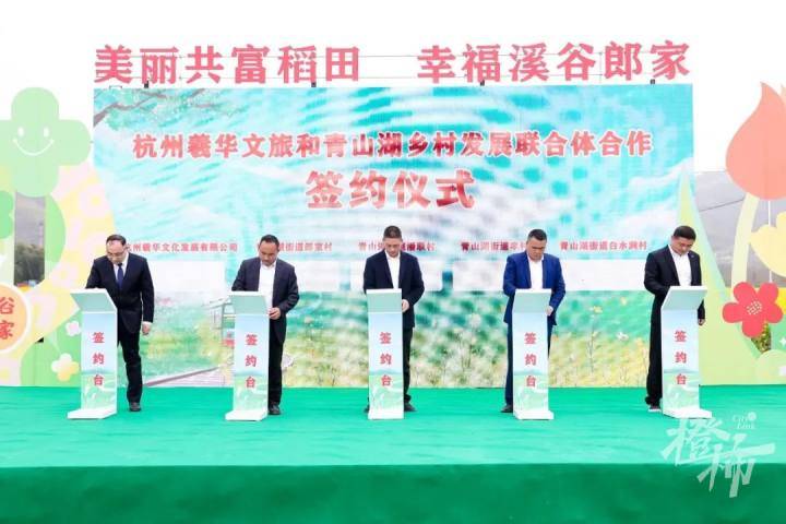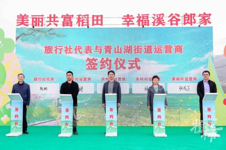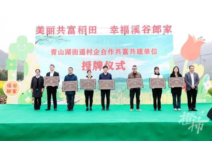 现场,郎家村“华东十大油菜花胜地”授牌、青山湖街道村企合作助共富单位授牌、杭州曦华文旅与青山湖共富联合体合作签约、旅行社代表与青山湖运营商合作签约……郎家村首届油菜花节的举办,要归功于村里的“共富稻田”。