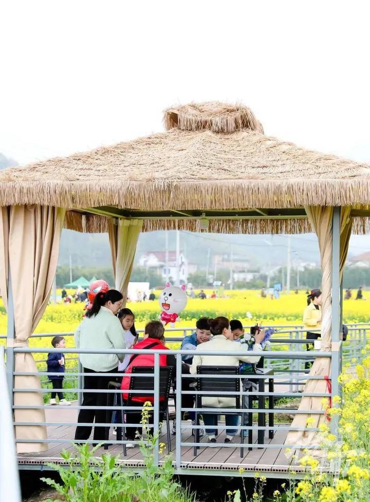 4月1日到4月下旬的油菜花节,除了游览灿烂盛放的油菜花,你更可以在油菜花田间田园长廊漫步、田园茶Ting品茶、田园天幕咖啡、田园帐篷露营烧烤、田园“共富号”小火车体验、田园小吃土货一条街、田园乡村厨娘一桌菜、田园亲子抓鱼摸虾、田园音乐快闪、登楼观景拍摄等诸多游乐。