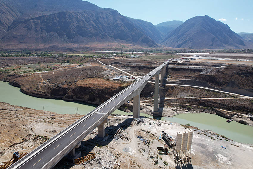 大具金沙江大桥全长587米,桥面宽11米,两端连接线全长2.8公里,路面平均宽8.5米,设计行车速度标准为40千米/小时,由云南交投集团公路建设有限公司承建。该桥建成后,将形成丽江——下虎跳峡(大具)——上虎跳峡——香格里拉、丽江——下虎跳峡——香格里拉白水台——香格里拉的两条环形旅游路线,极大带动两岸地区的经济发展。(程浩、和岳琪、李佳健)