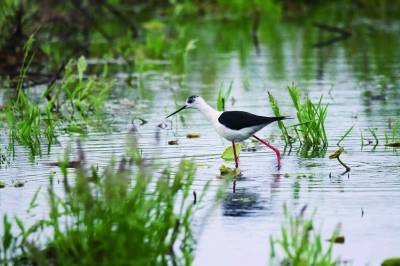 他告诉记者,黑翅长脚鹬是反嘴鹬科长脚鹬属的一种鸟类,属于国家保护动物,是惹人喜爱的水鸟,常栖息于开阔平原草地中的湖泊、浅水塘和沼泽地带。每年4月至5月,便会迁来北方繁殖地,9月至10月再离开北方繁殖地往南迁徙。因其体态修长,宛若亭亭玉立的“美人”,故被誉为鸟界“超模”。