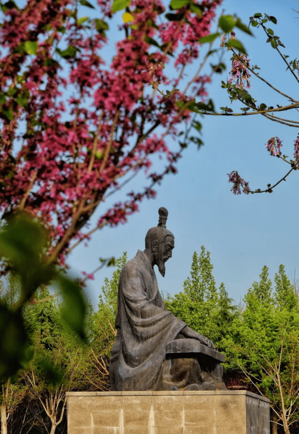 在公园北部,伫立着中华民族第一位乐神宗祖——师延的雕像。他于高台之上,正襟危坐,腿上放一把古琴,修指轻抚,神情悠然,仿佛在默默诉说发生于此的久远的故事。