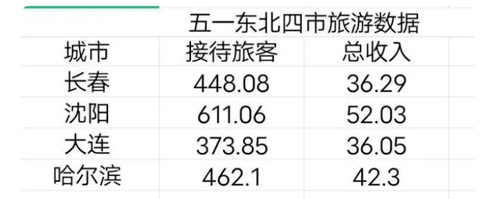 据网络披露的信息,东北主要城市五一接待国内游客数据和总收入纷纷公布,沈阳第一(611.06万人)、哈尔滨第二(462.1万人)长春第三(448.08万人)、大连第四(373.85万人)。