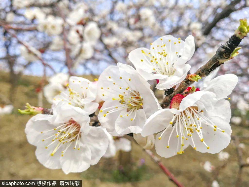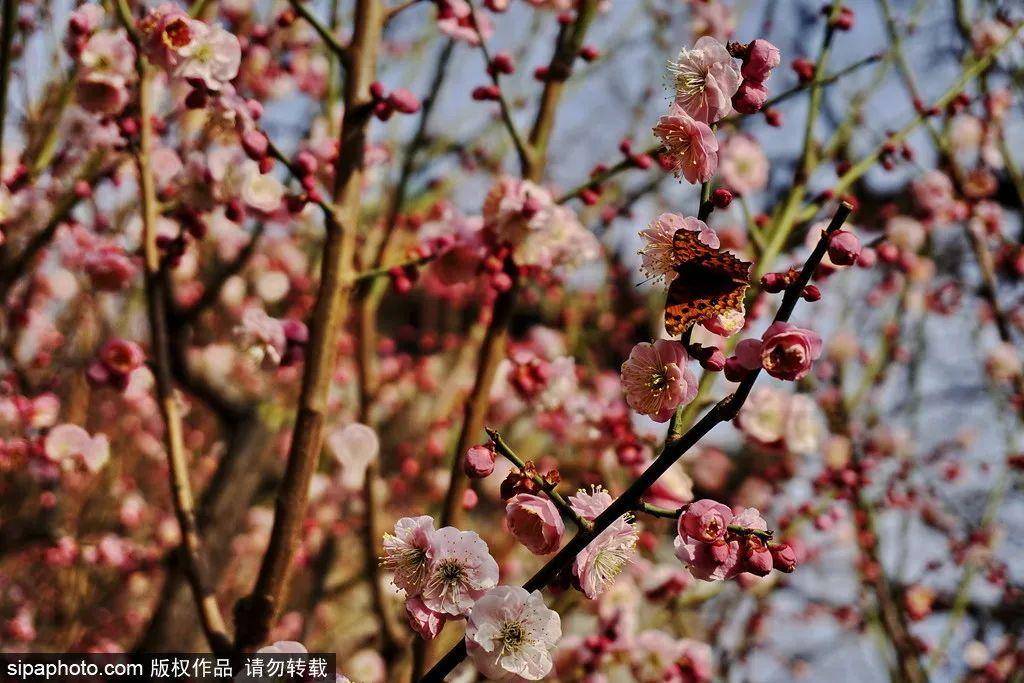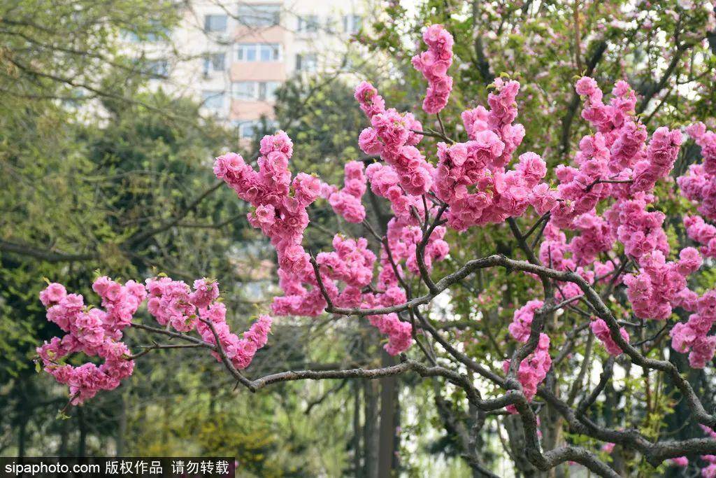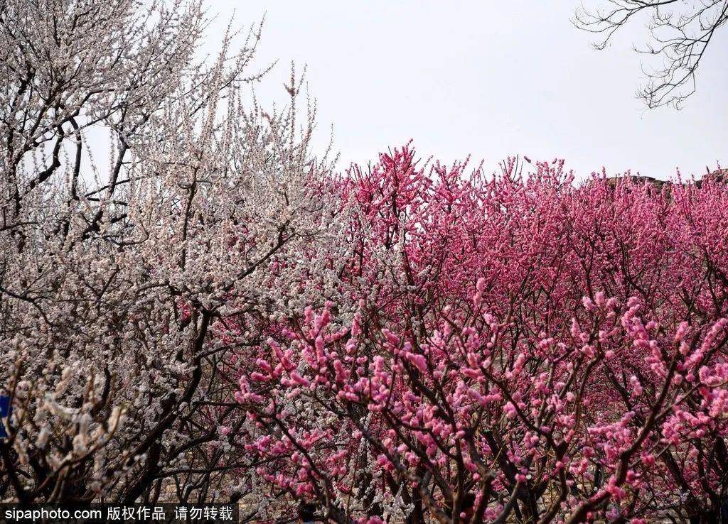 四月初,美人梅等深色品种、花期较晚的梅花会渐次绽放。