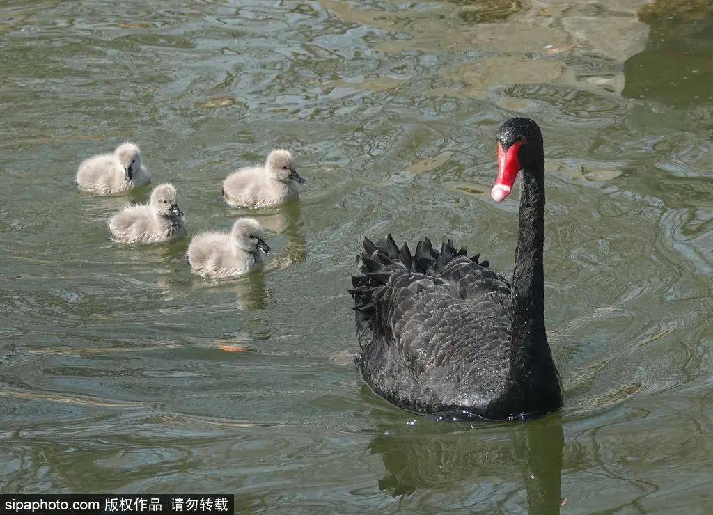 柳绦下,鸭子和黑天鹅自在嬉水,吸引了一大波游客的目光。凫水的鸭子和黑天鹅让圆明园春景,多了几分动态之美,整个公园春光无限,生机勃勃。