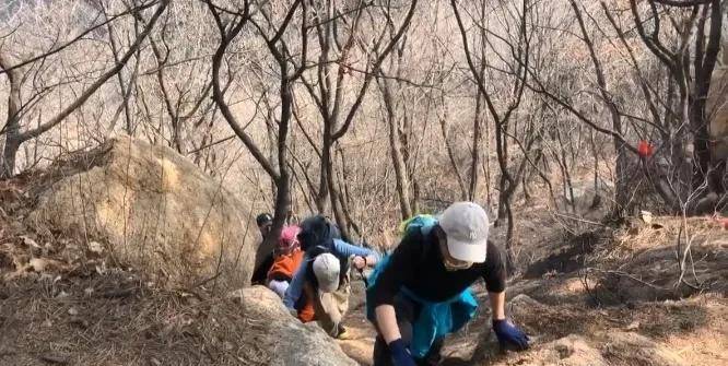 我们一行人近9点到达庙尔台村登山口,一下车先爬了一段长长的闷坡,累得我们气喘吁吁,好在我们多数人带了登山杖助力。这段路对户外新人尤其是考验,一路不时的听有人问,“爬一半了吧?”,“快到了吧?”