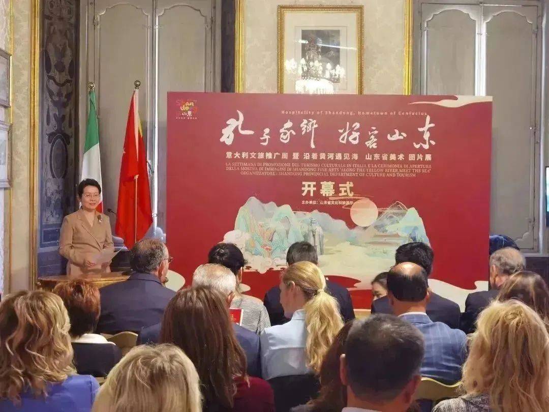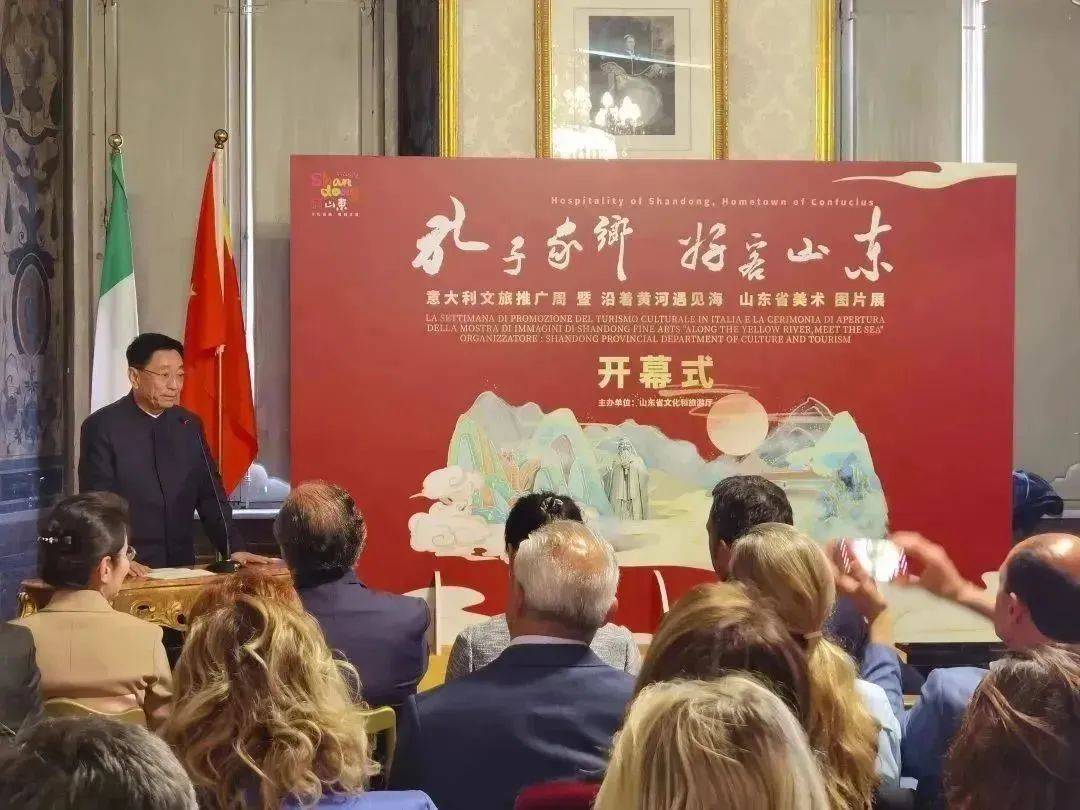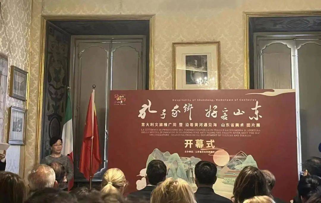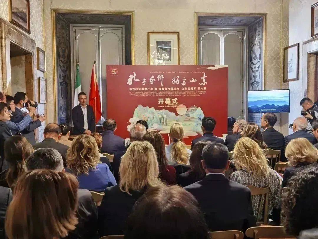 当地时间5月6日,由山东省文化和旅游厅主办的“孔子家乡 好客山东”意大利文旅推广周暨“沿着黄河遇见海”山东书画图片展在罗马开幕。