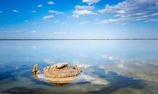 察尔汗盐湖中因为蕴含着大量的盐资源,所以在长时间的风吹日晒之下,就会在湖上形成很多盐颗粒,它们往往会凝聚在一起,形成一朵朵美丽的盐花,在阳光下,它们就会散发出如钻石一般的光芒,此外盐湖上还有一道别样的风景线,那就是万丈的“盐桥”,它的长度大约是32公里,虽然它的成分也是盐,但却有着出乎意料的承载能力,让千里迢迢来观看的游客们都匪夷所思。