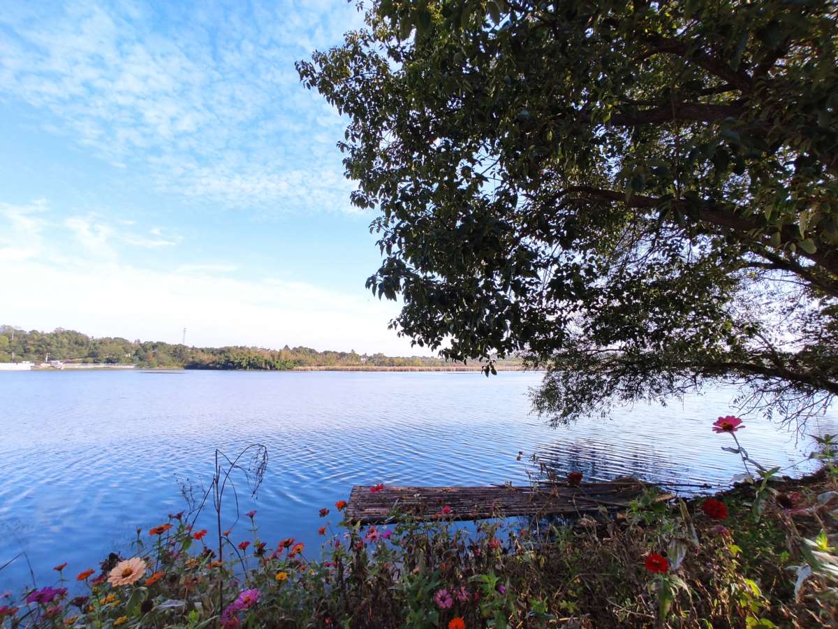 漫步东亭湖,湖面如镜,湖水湛蓝,波光粼粼,的确是“水光潋滟晴方好”。
