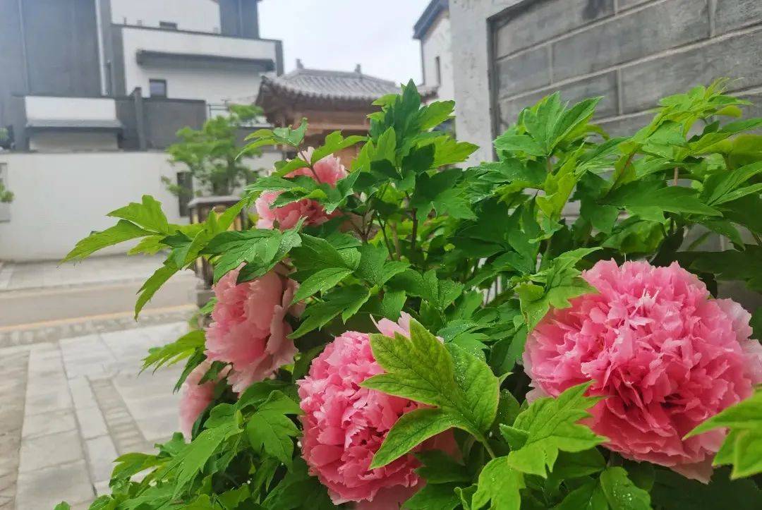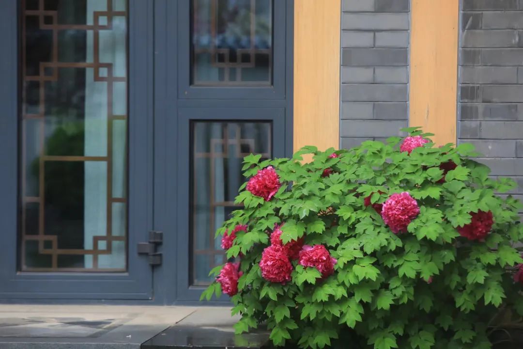 白石山居业主甚爱牡丹,种在家门口,种进院子里,比小镇其他区域的牡丹开得更早一些。与洛阳、菏泽别致的牡丹花园不同,她更有精神气,更有人情味,仿若落入凡间的仙子。黛瓦白墙、垂花木门、中式院子与国风牡丹相映,淡淡花香间是诗意的文化原乡。