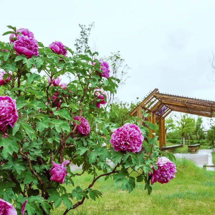 在小镇牡丹随处可见,以鼎泰宫旁牡丹园为核心观赏区,在百渡食府、天鹅湖、雀山湖等区域均有种植。有魏紫、丛中笑、花二乔、赵粉、霓虹焕彩、银红巧对、洛阳红、国红、姚黄、豆绿、大金粉、黑花魁等30多个品种,有的花龄长达30年,现鼓起花苞,不久即将迎来盛放期,色泽艳丽,朵朵华贵,为小镇游客和山居家人展示它的盛世容颜。