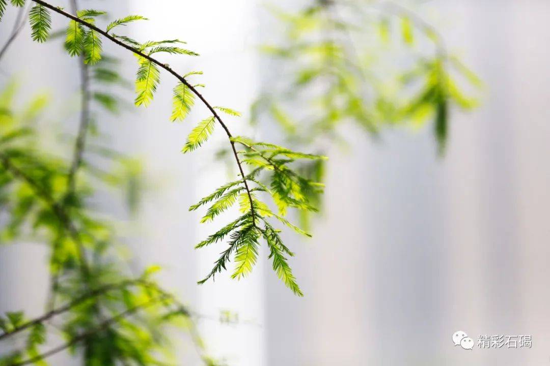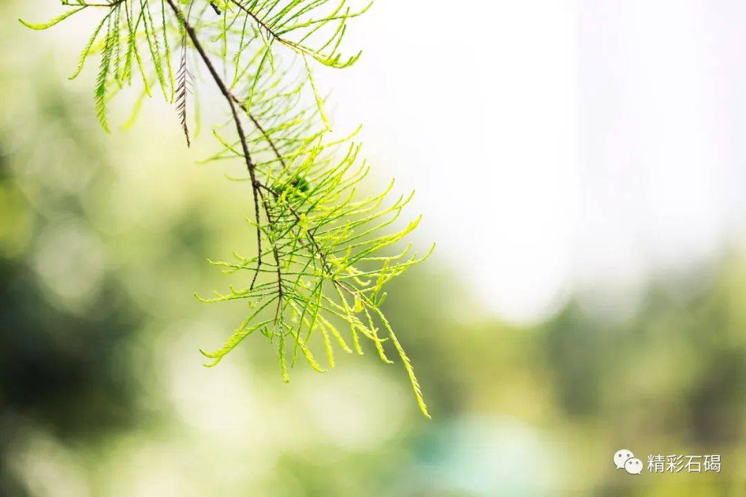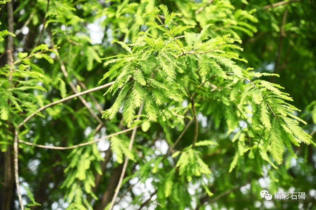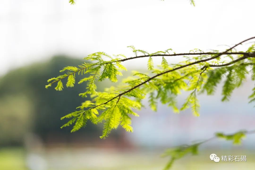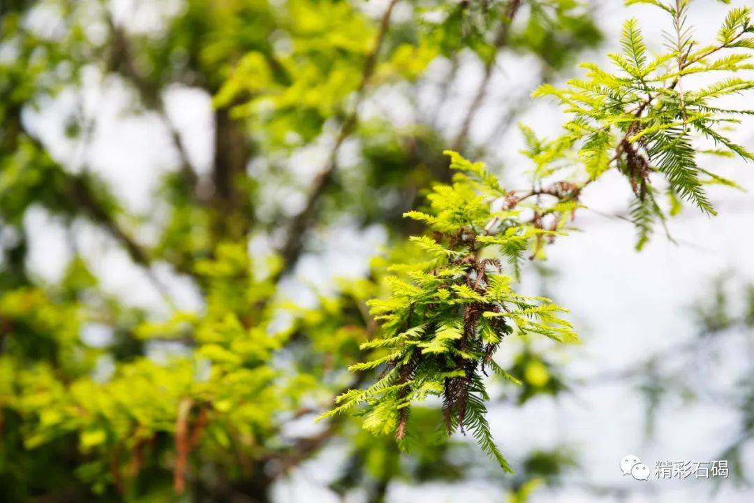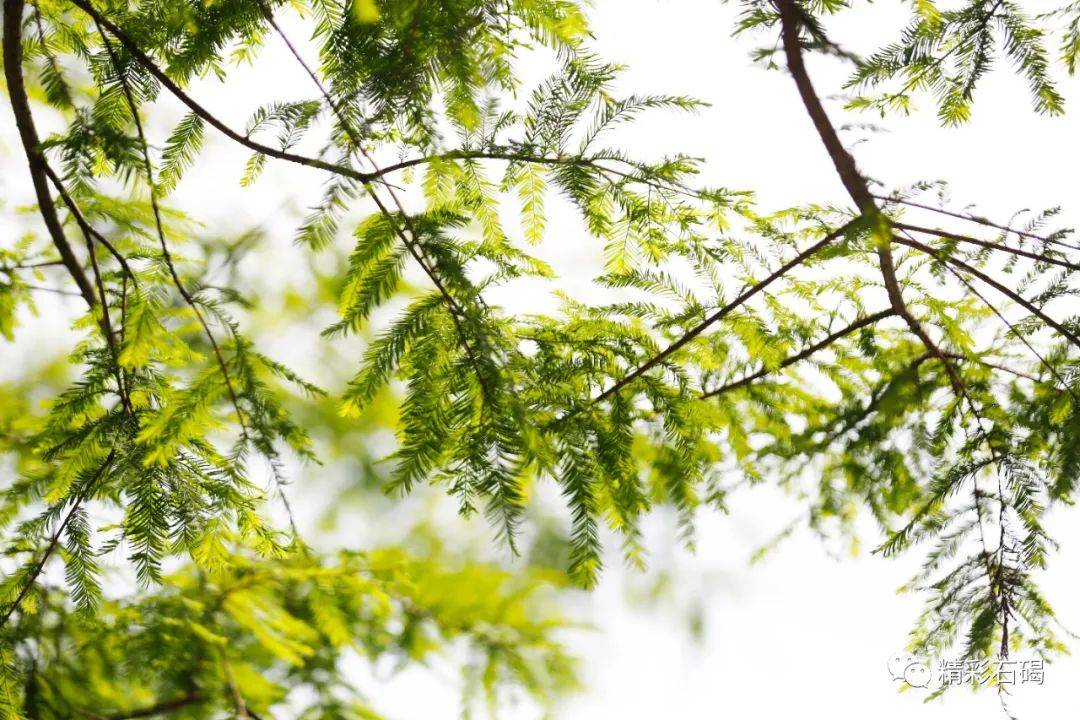 只见矗立在水边的落羽杉拼尽全力吐露出娇嫩欲滴的绿蕊,密密匝匝的绿意缀满挺傲的枝干,焕发着生生不息的无穷生命力。它们正优哉游哉地摇摆着枝干,显现出了一派欣欣向荣的景象。