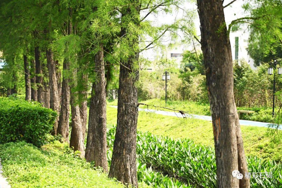 初夏时节在石碣起航广场一隅,一簇簇翠绿映入眼帘,仿佛在画布上随意泼洒了不同色阶的绿色颜料,画风清新、舒畅、自在、美不胜收。
