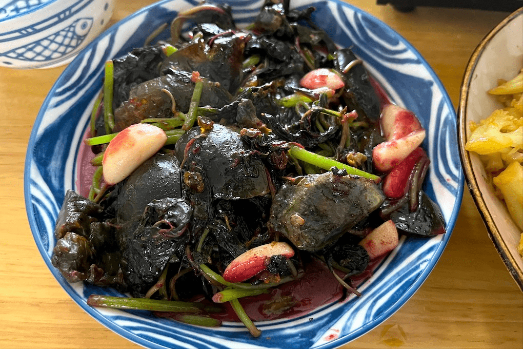 这是南昌地区比较知名的一个菜了,基本上家家户户都会做,陈欢自然也不会放过做这道菜,只不过这黄丫头做的实在看不出来是啥菜,鱼肉感觉都粘在了一块,这样的一道鱼菜,给你是否有胃口呢?而且这个菜,陈欢的酱油明显是放多了。