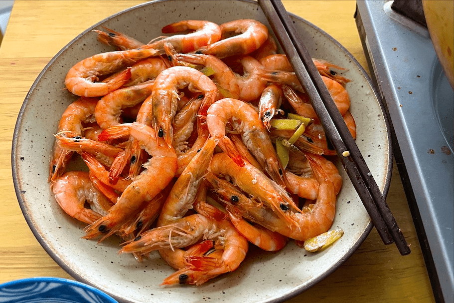 这个菜总归没啥问题了吧,陈欢心里想着,不过当男友吃过一只以后,来了句勉勉强强可以吃,只是这个虾肉有点老,不过不影响吃。陈欢煮虾的时候,也是怕虾没有熟透,于是在煮的时候,特意时间长了一些,这样就导致基围虾煮的时间有些长了,肉质和鲜味都流失的比较严重,不过看着女友第一次给自己做水煮虾,也只能说是可以吃。