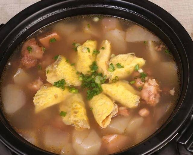 此菜的做法改自鱼头泡饼,以鲫鱼和鸡架熬成的汤打底煮制,用熟鸡脚皮打成的泥增稠提香,虽然工艺相对简单、调味也不复杂,但成菜的鲜味和质感却可圈可点,经典菜品换个吃法即推成出新。