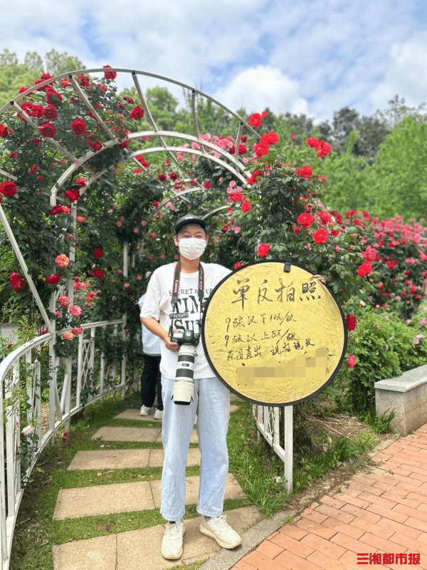 (湖南省植物园内“摆摊”拍照的摄影师。受访者供图)