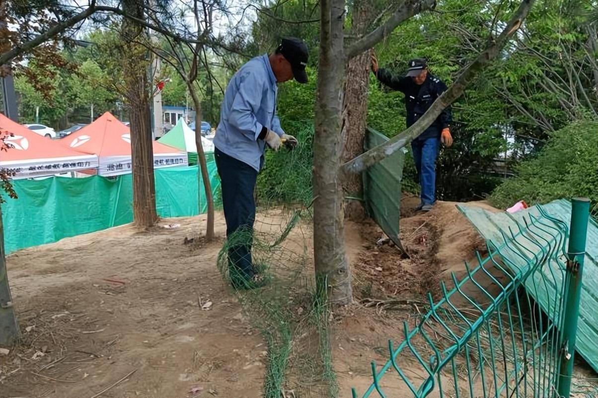 为了让广大游客安全游园,管理所多次组织工人对园区损毁的基础设施进行维修。其中,维修围挡32处、台阶5处、更换公厕水龙头2个,观景台破损露尖石材6处,公厕入门1个。因园区在进行二期工程,在园区大门口及长虹南路加装了护栏围档。