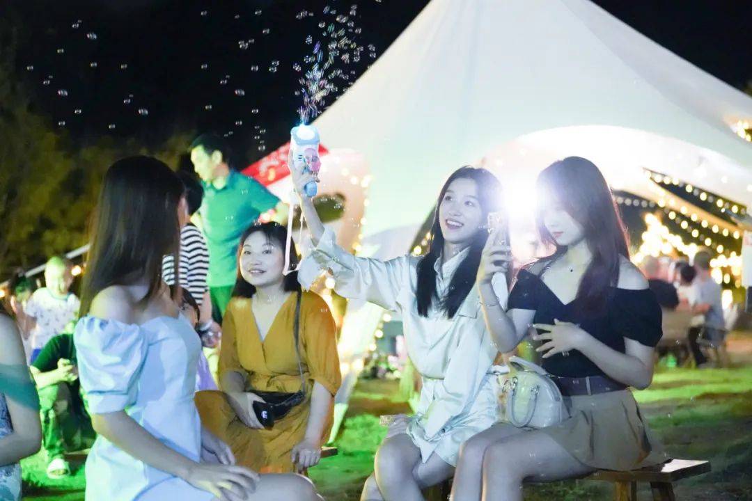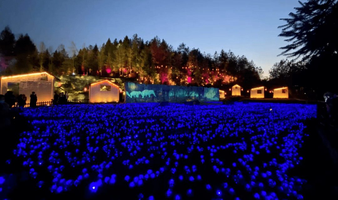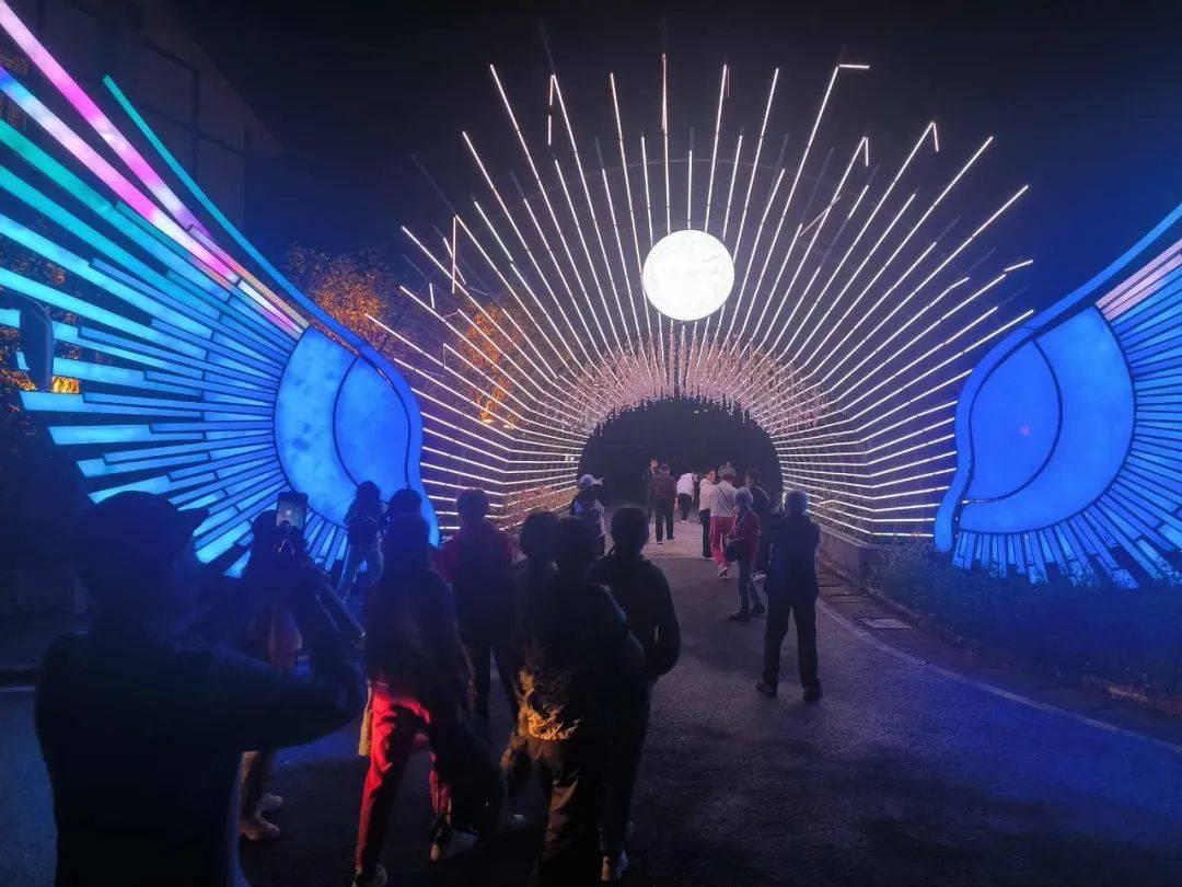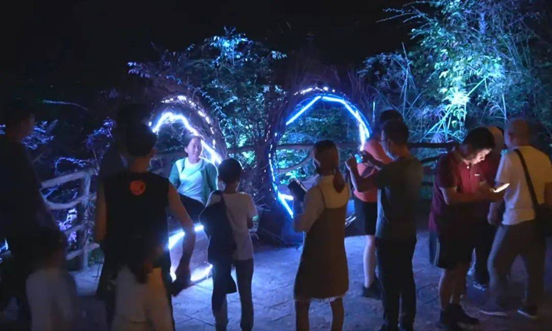 晚饭后,景区工作人员带领江西的游客“夜游”巴山。