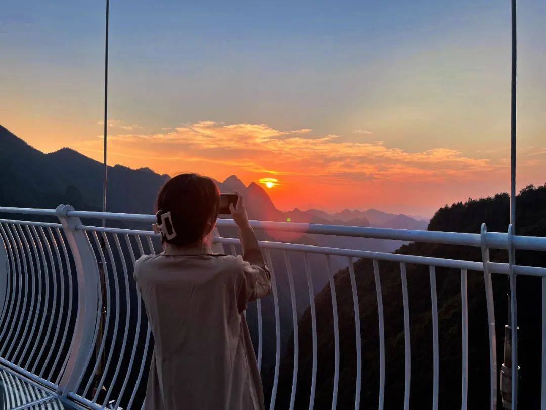 来到山路不只十八弯景点旁就能看到云顶飞渡玻璃桥啦~ 两峰地势险峻,中间峡谷横穿岩锚主跨680米,落差380米,目前均居世界第一。 走在玻璃桥上可以让你感到“寸步难行、胆战心惊”欲领略长空梦境又留心于惊悸之中。