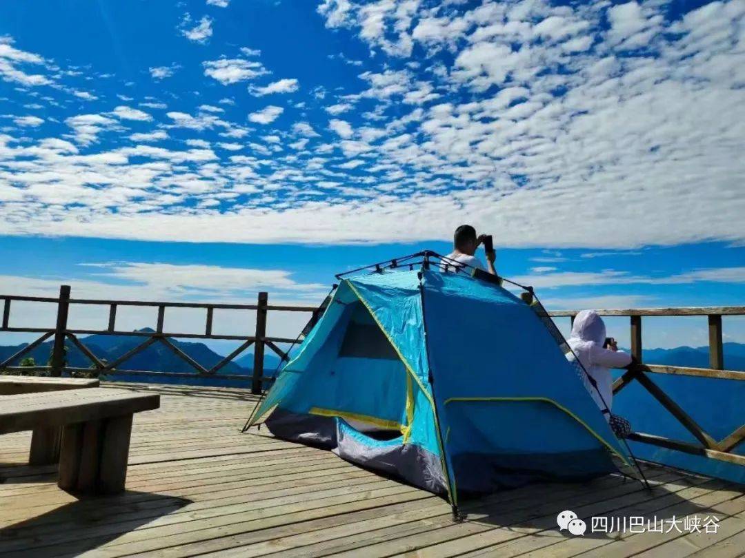 来到巴山大峡谷,您可以前往景区打造的巴山云顶旅游度假区,在桑树坪露营基地来一段康养之旅。桑树坪海拔960米,空气质量极佳。营地内还建设有观景平台、弧形茅草长廊、休闲场所、登山游步道等配套设施,是您休闲露营的绝佳圣地,露营基地依山而建,四周重峦叠嶂、苍翠欲滴、风光醉人。在星空露营地,在房车里、在玻璃房里、在帐篷里看漫天繁星,偶遇仲夏夜晚的萤火虫,享受最惬意的亲子时光。