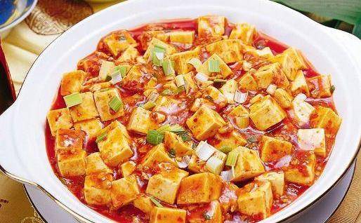 麻婆豆腐,典型的川菜代表之一,这道菜已经有上百年的历史,做麻婆豆腐讲究鲜、嫩、香、辣、滑、麻等等要点,虽然是素菜,但是吸引力不下于一般的荤菜。