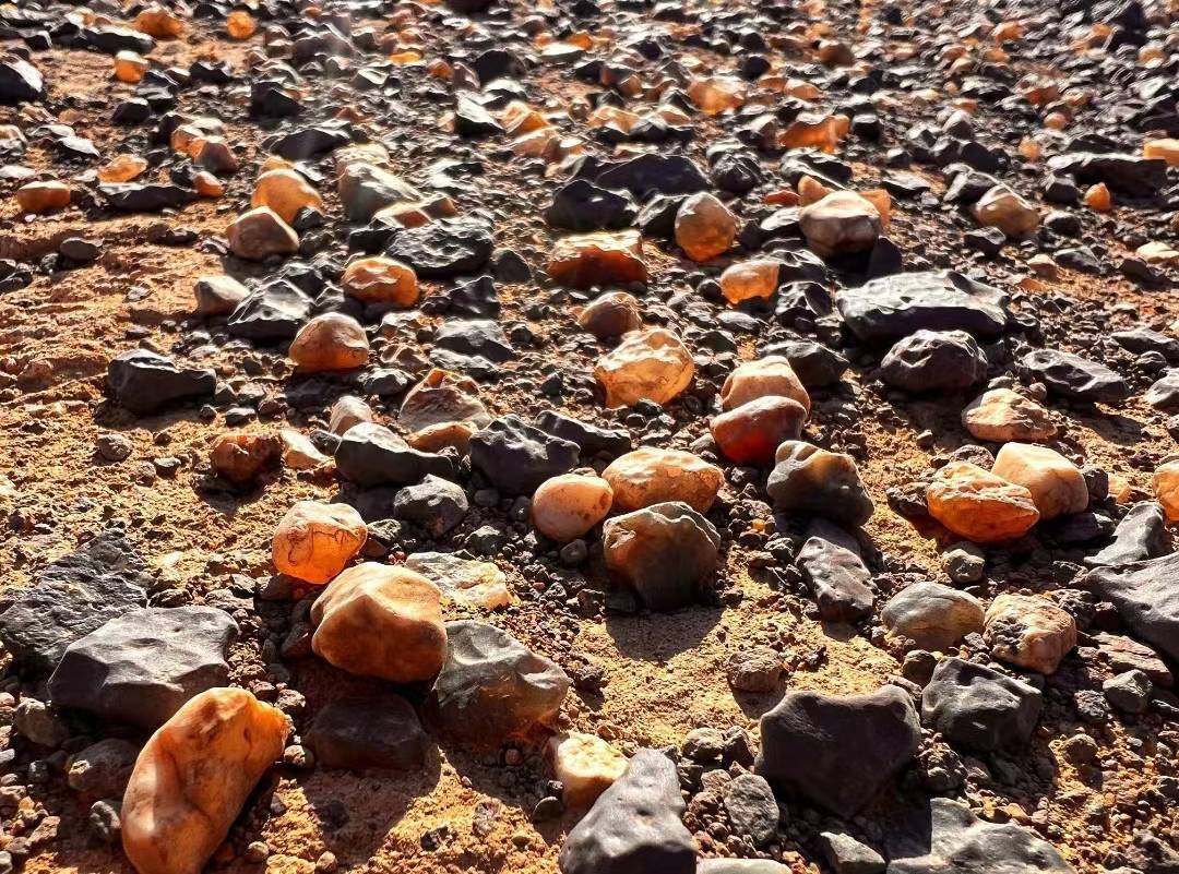 罗布泊之眼的形成有两种说法,第一是说这里是火山的喷发口,另一种说法是由陨石撞击地面而形成的。无论是哪种说法,都会有一个共同的特点,就是高温,所以这里遍地是玛瑙,也许这里还隐藏着外星来的陨石颗粒。