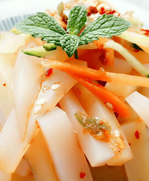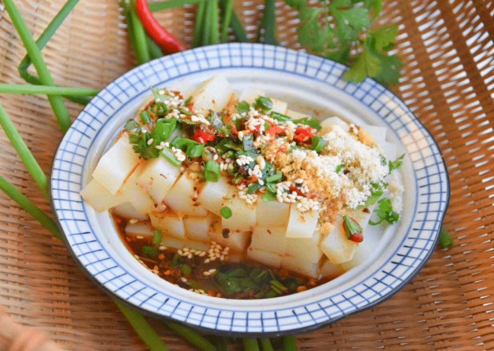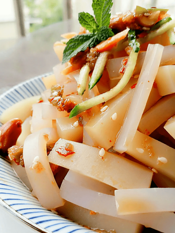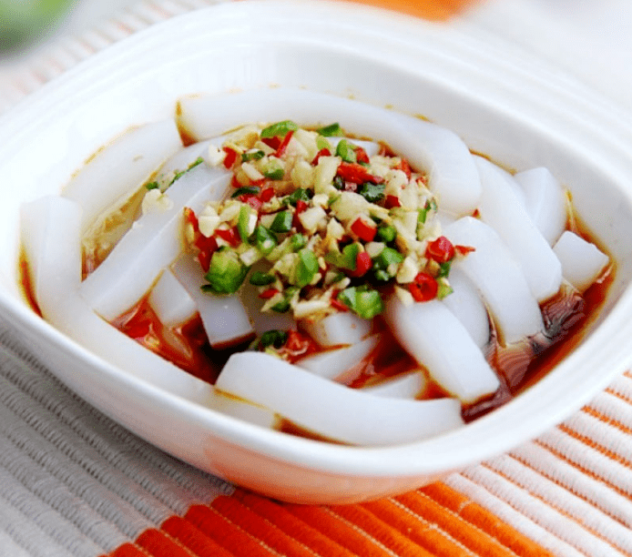 对于吃凉粉这件事,连云港人解锁了更多“花样”——除了香煎、爆炒和做馅,“稀凉粉”也是不可多得的一道美味。稀凉粉就是刚出锅的凉粉尚未脱模成型,看起来就像凉粉糊,拌上蒜汁、酸醋,趁热吃。舌之所尝、鼻之所闻,板浦凉粉是传承多年的非遗美食,如今却仍活跃在连云港人的餐桌之上,它是穿越了时空的海州味道,是传承了千百年的传统技艺。