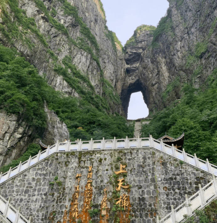 3. 天门山:天门山位于张家界市的南部,拥有高达1518米的天门山顶,是天门山脉的一部分,是世界上悬崖峭壁最险峻的山之一。这里有座巨型山洞“天门洞”,可以从底部乘坐缆车或者攀爬2860级台阶到达顶部欣赏景色。