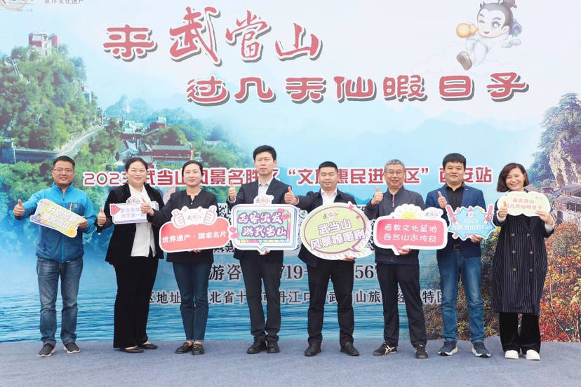 5月7日,“来武当山过几天仙暇日子”2023武当山风景名胜区文旅惠民进社区(西安站)启动仪式在大明宫国家遗址公园隆重举办。来自湖北武当山景区、西安任我行旅行社、世景旅投(陕西)旅游公司、镇安塔云山景区等相关领导嘉宾,新闻媒体、旅游达人及市民游客一同参与。本次启动仪式惊喜不断,热潮迭起,武当山景区以其独特的旅游资源、优越的自然环境、博大精深的文化内涵,在古城西安惊艳亮相,展示了“亘古无双胜境,天下第一仙山”的风采与魅力。