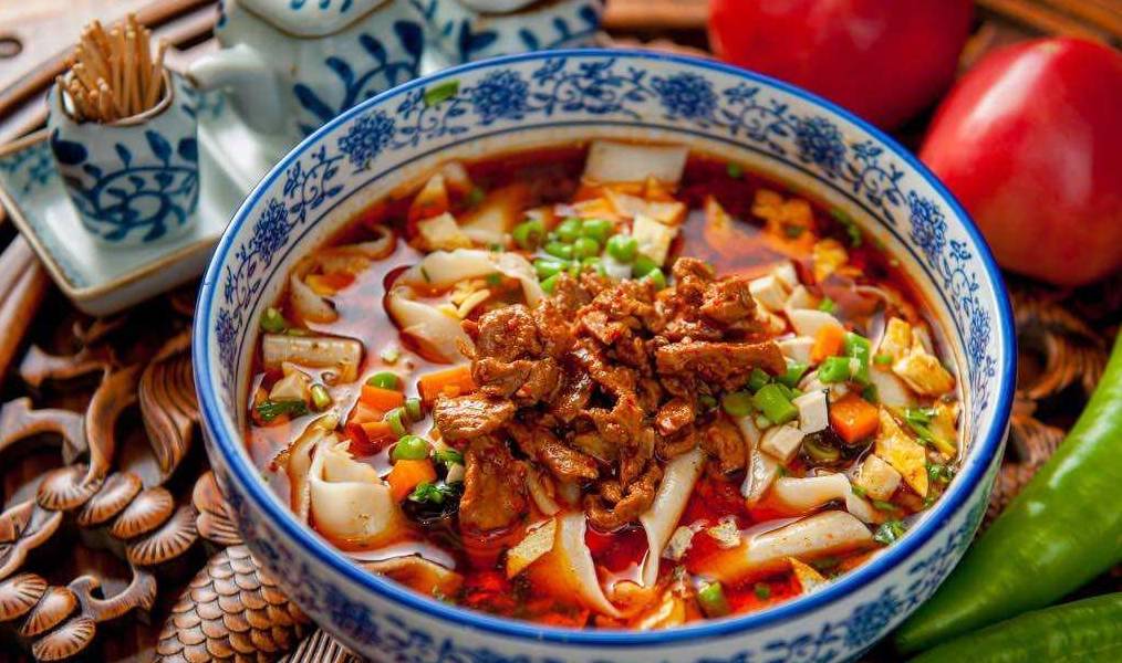 酸汤面亦称“细长面”,特点是“薄、精、光、煎、稀、汪、酸、辣、香”。酸汤面酸中带辣,开胃爽口,色香味俱全。“下在锅里莲花转,捞到碗里一根线。”好的酸汤面柔软耐嚼,汤香扑鼻。夏天来点酸酸的辣辣的味道,吃上一碗酸汤面绝对让你胃口大开,开胃醒脑提神。