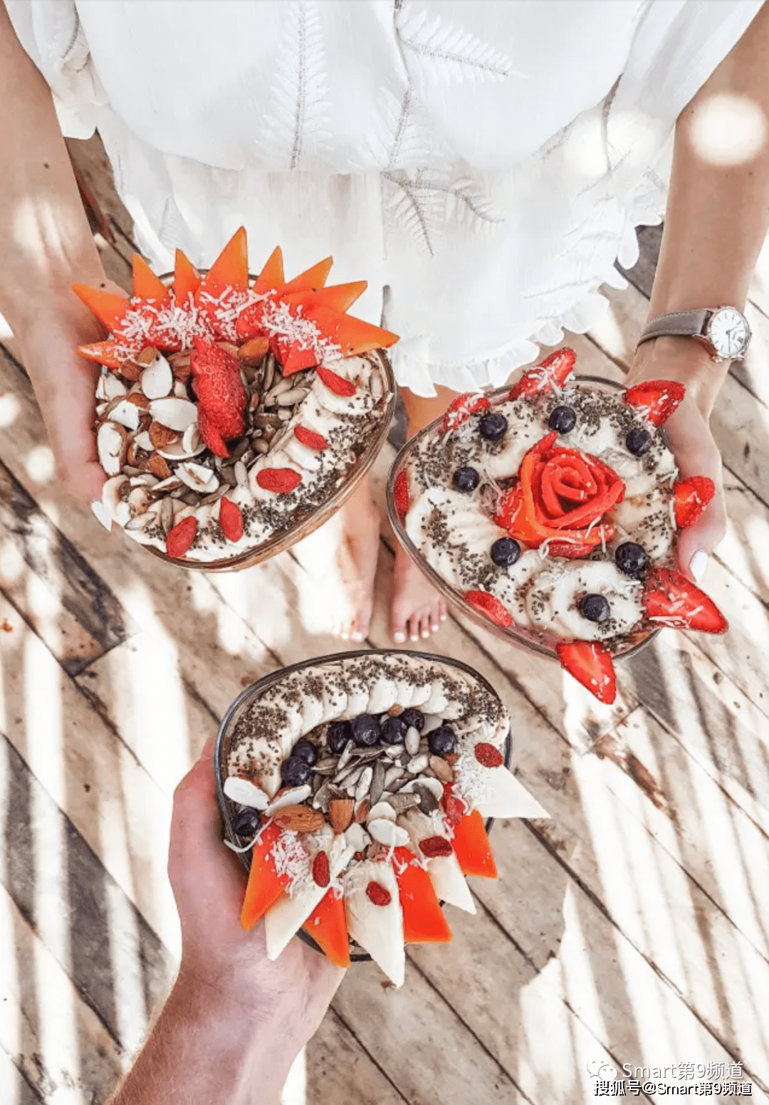 可以是帽子、水果、墨镜或者一本书,总之,找到你手边一切能显脸小、显意境的东西,果断挡起来!