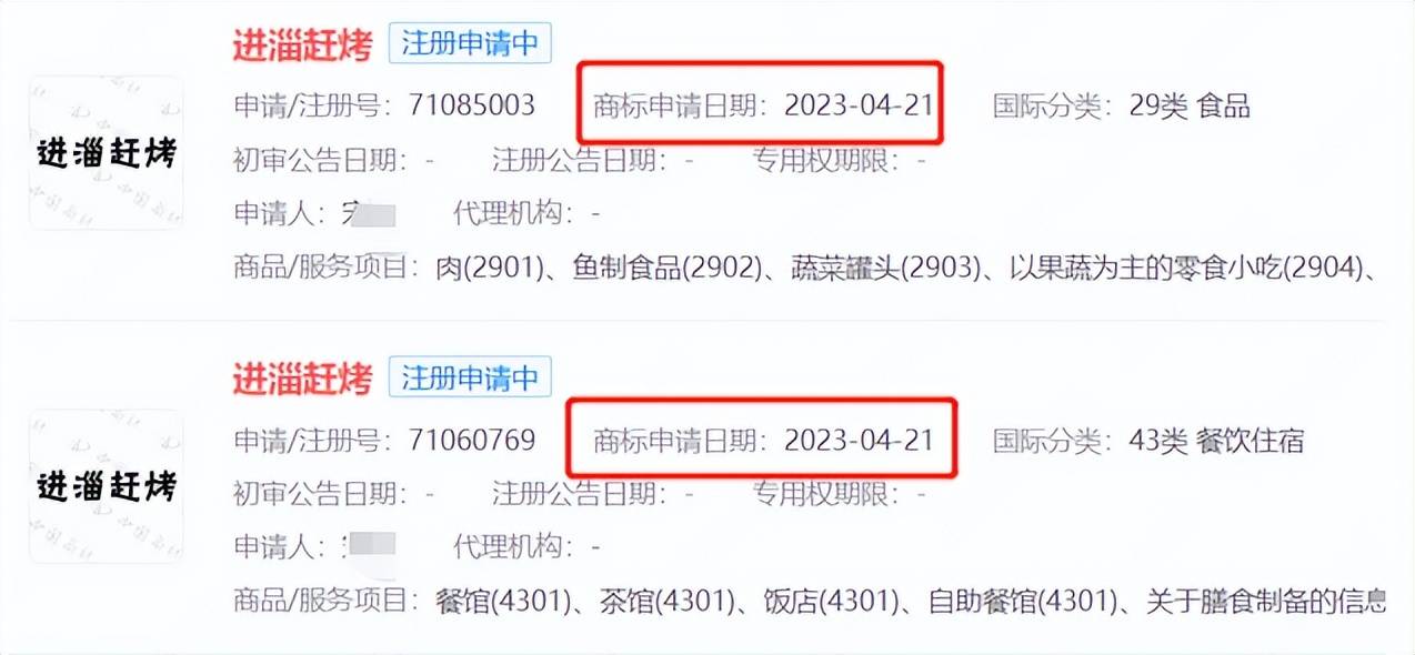 另外,“进淄赶烤”“赴淄赶烤”“来淄赶烤”等都被申请注册成商标,商标状态均为“注册申请中”。