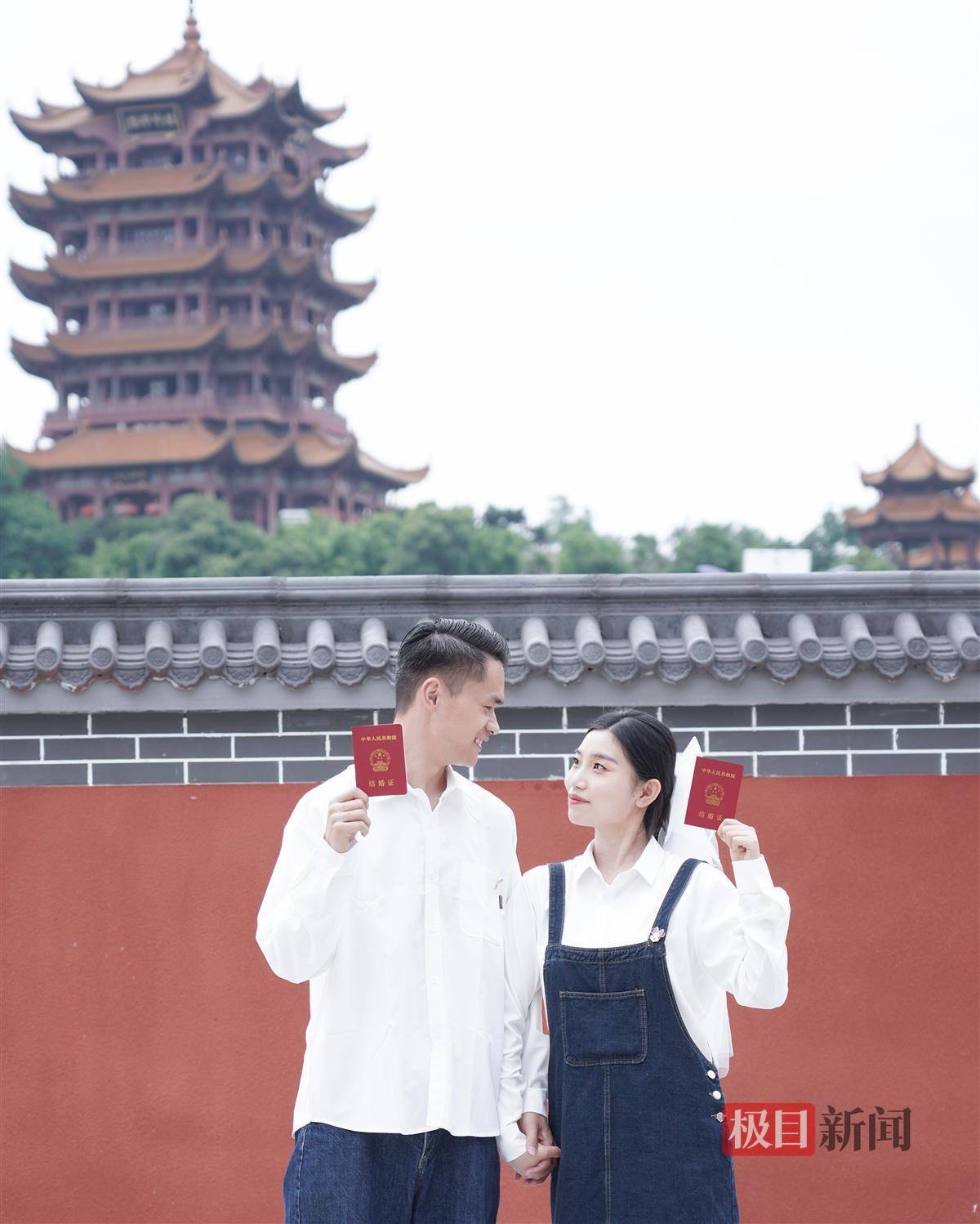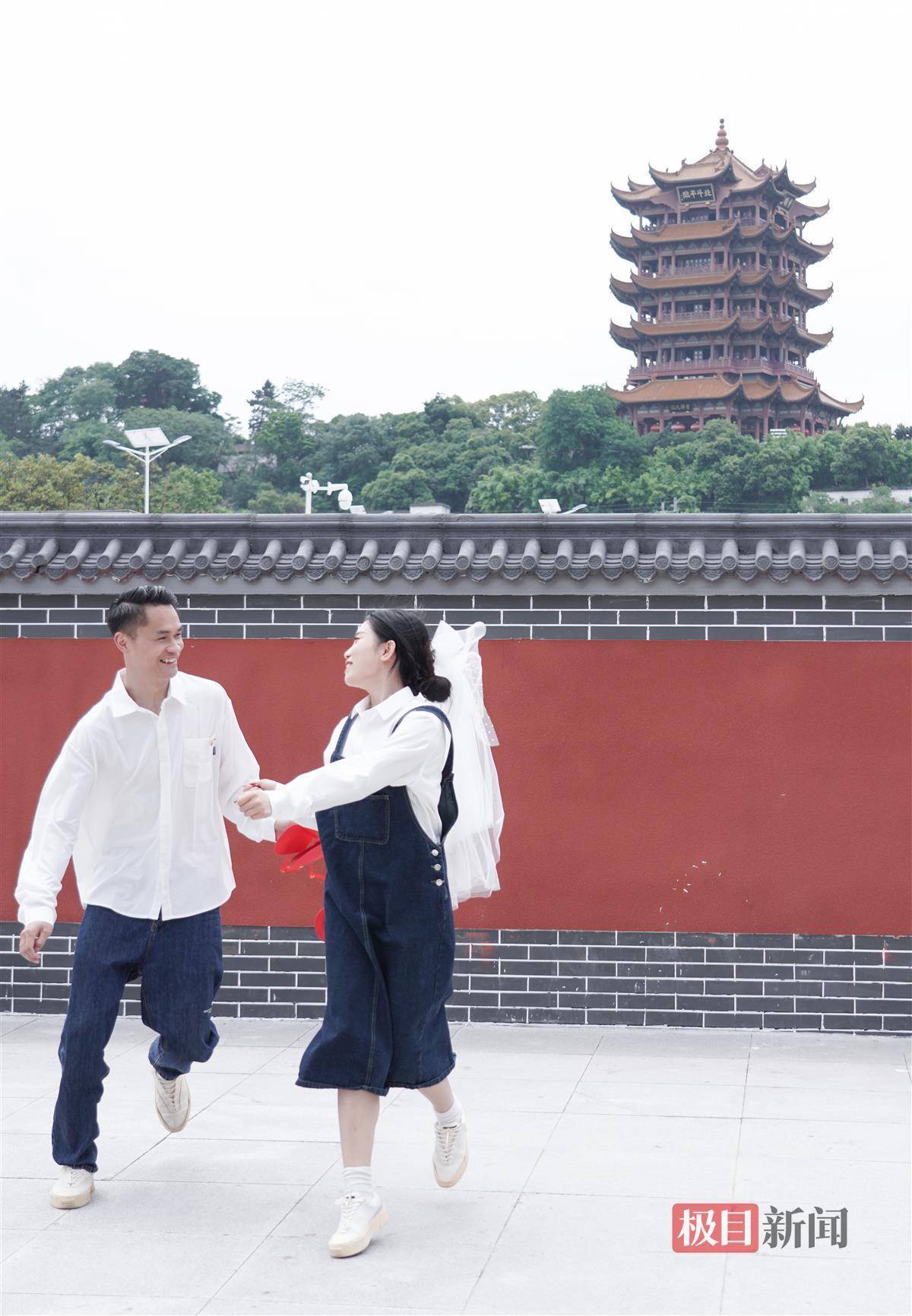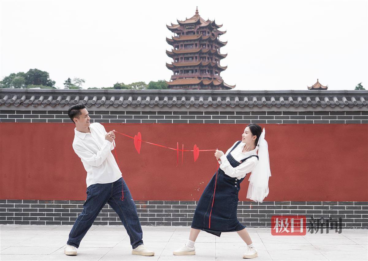 “故宫同款”同款围墙亮相黄鹤楼附近 吸引外地游客打卡 本地青年男女拍结婚照
