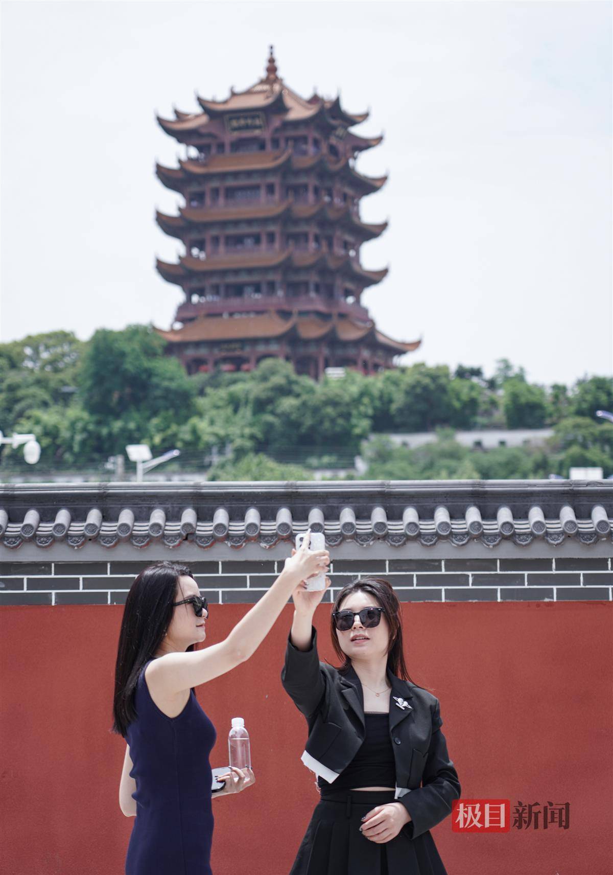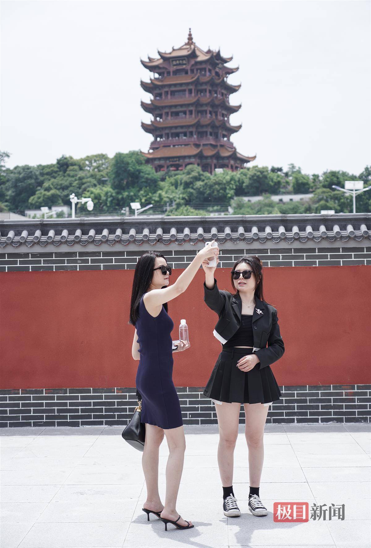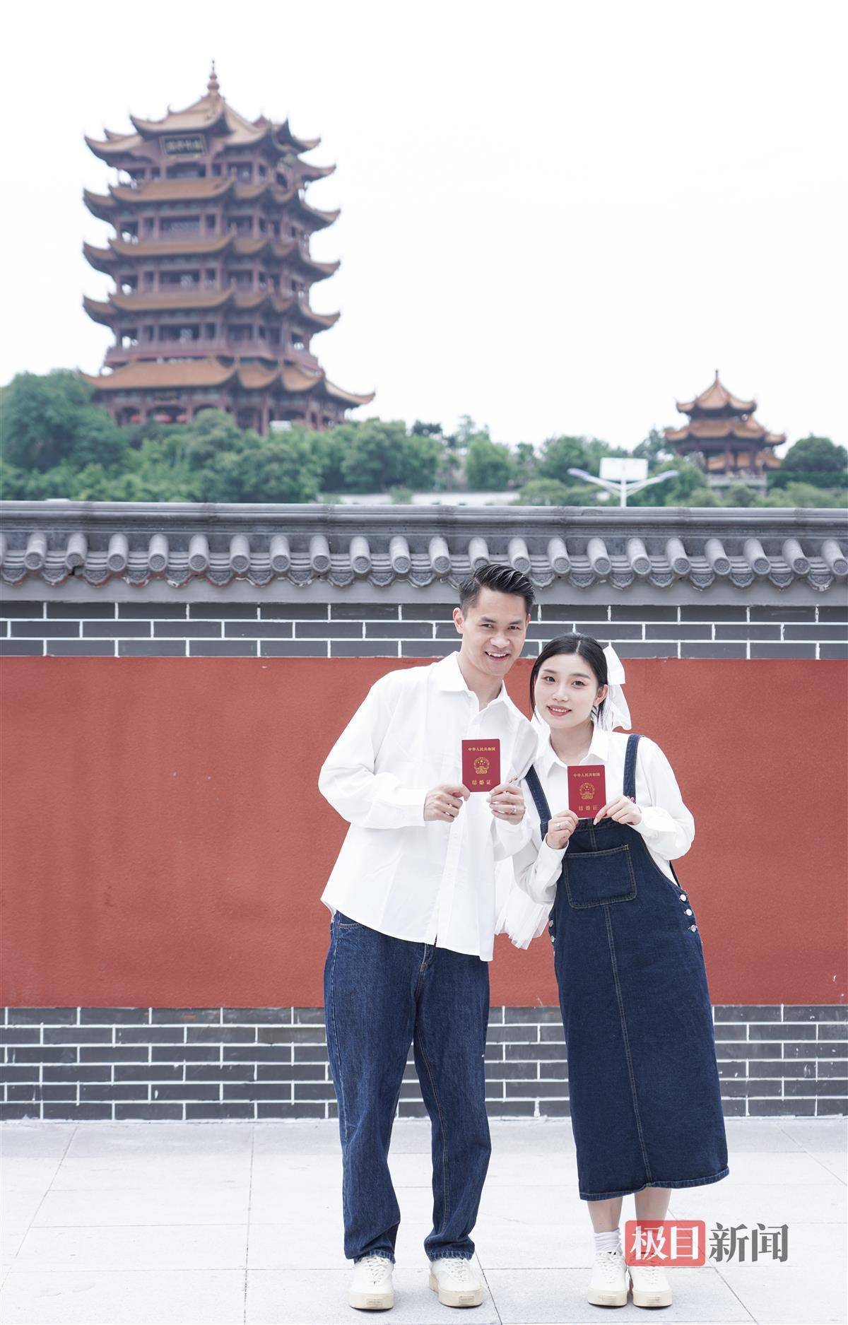 “故宫同款”同款围墙亮相黄鹤楼附近 吸引外地游客打卡 本地青年男女拍结婚照