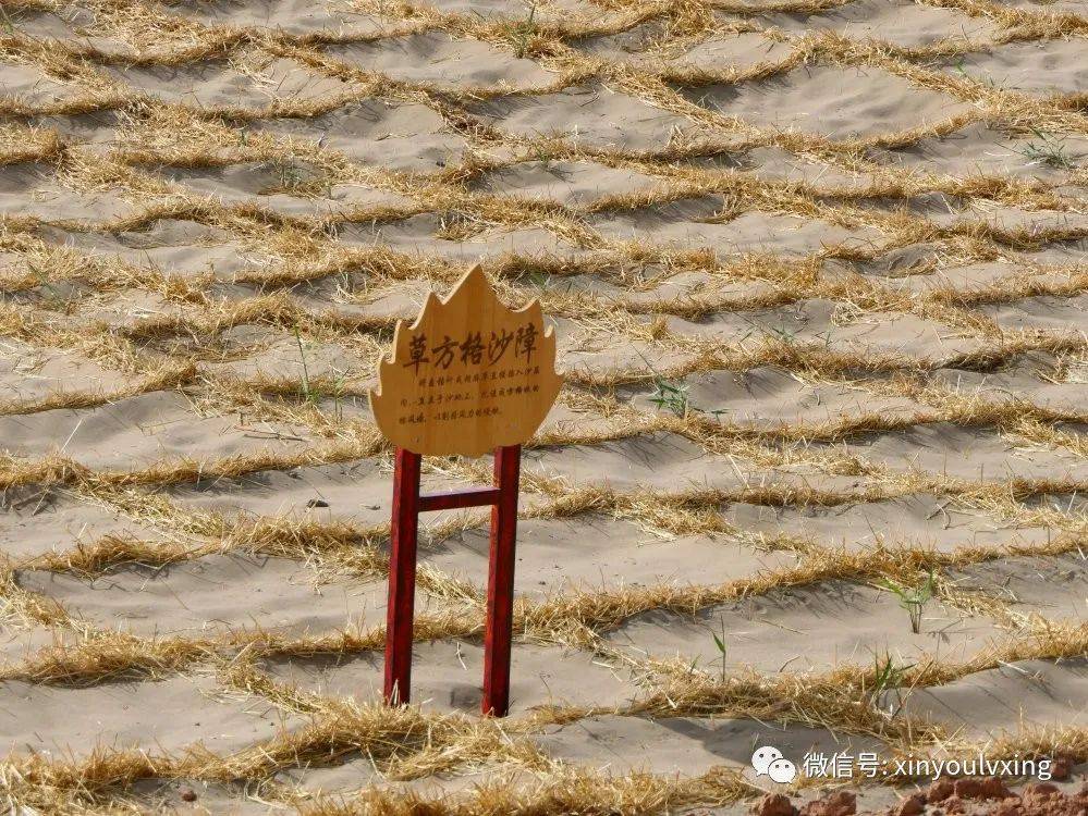先挖一个方形的小坑,然后把麦草放进去,用沙子把麦草固定好,沙土不能太浅,这样麦草会随风飘走;也不能太深,这样麦草就没有办法发挥作用。一个一个的草方格连起来,就可以形成一道沙障,进而起到固沙的作用,还可以在方格中种芦苇或者小树苗。